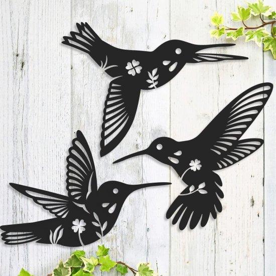 Bu dekoratif metal ürün seti, üç ayrı kolibri figüründen oluşan etkileyici bir duvar süsüdür. Siyah renkli metal malzemeden üretilen parçalar, ince ve detaylı bir işçilikle tasarlanmıştır. Her bir kolibri figürü, açılmış kanatları ve zarif duruşlarıyla doğanın güzelliğini yansıtır.