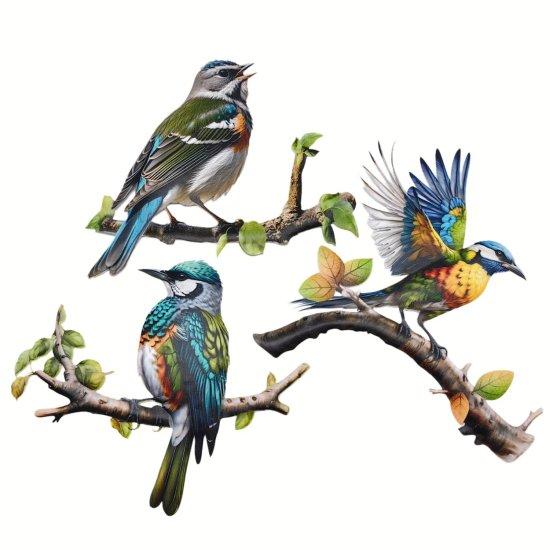 Doğal Görünümlü Üç Parçalı Metal Kuş Duvar Dekoru