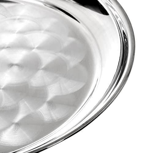 Bu dekoratif ürün, mutfak ve servis alanları için ideal bir aksesuar niteliğinde. 6 adet tepsi bir arada sunulan üründe, her bir tepsi yaklaşık 31 cm çapında. Parlak ve pürüzsüz paslanmaz çelik malzemeden üretilmiş tepsiler, merkezinde zarif bir spiral desenle dikkat çekiyor.