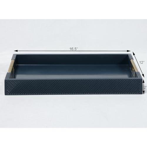 Bu dekoratif tepsi, modern iç mekan tasarımlarına şık bir dokunuş katacak nitelikte bir üründür. Koyu lacivert rengi ve parlak yüzeyi ile dikkat çeken tepsi, endüstriyel ahşap malzemeden üretilmiştir. Tepside bulunan altın renkli metal tutamaklar, ürüne zarif bir görünüm kazandırır.