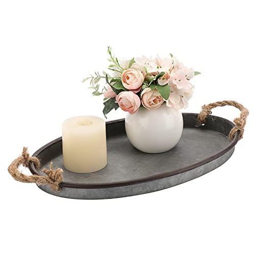 Rustik Hasır Saplı Gri Metal Sunum Tepsisi