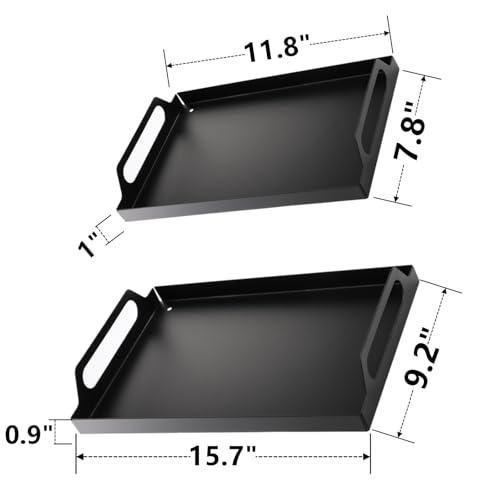 Bu dekoratif metal tepsi seti, modern ve şık bir tasarımla evinizin her köşesine zarafet katacak. İki farklı boyutta sunulan tepsi seti, mat siyah rengi ve pürüzsüz yüzeyi ile dikkat çekiyor.
