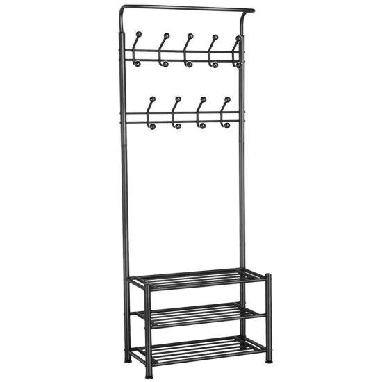 Üst kısmında 18 adet kanca bulunmaktadır. Bu kancalar mont, ceket, şapka, çanta ve şemsiye gibi çeşitli eşyaları asmak için idealdir. Alt kısmında iki katlı ayakkabılık bulunmaktadır. Bu bölüm ayakkabıları düzenli ve derli toplu bir şekilde depolamanıza olanak sağlar.