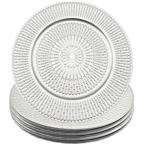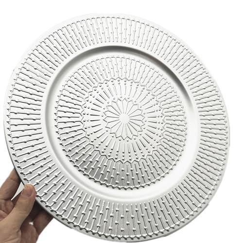 Her bir supla yaklaşık 33 cm çapında olup, oldukça dayanıklı ve sağlam plastik malzemeden üretilmiştir. Parlak gümüş rengi ve ince işlemeli deseniyle sofra düzenlemelerinize zarif bir görünüm sağlar.