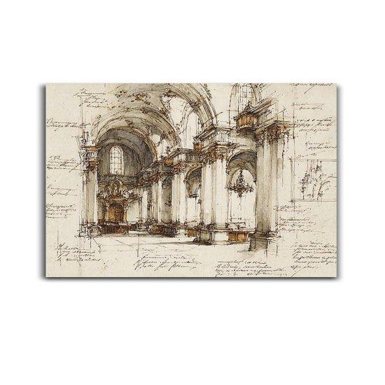 Bu dekoratif ürün, mimari çizimin zarafetini ve tarihsel detaylarını yansıtan etkileyici bir duvar sanatı örneğidir. Antik mimari çizimin zengin ayrıntılarını yansıtan görsel, tonları ve dokusuyla göz alıcı bir atmosfer yaratır.