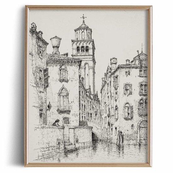 Bu etkileyici duvar sanatı, klasik mimari çizim tekniğiyle hazırlanmış bir resimdir. El çizimi tarzında, detaylı bir kent manzarası görülmektedir. Resim, gri tonlarda çizilmiş olup, ince çizgilerle inşa edilmiş tarihi bir şehir manzarasını yansıtır.