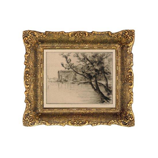 Bu dekoratif ürün, vintage mimari çizim sanatının zarif bir yansımasını sunuyor. Siyah beyaz tonlarda detaylı bir mimari eskiz, antik bir çizim estetiğiyle hazırlanmış. Çerçeve, oldukça süslü ve barok tarzda altın rengi desenlerle bezenmiş.