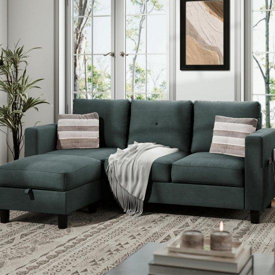 Üç kişilik L şeklindeki kanepe, esnek bir yapıya sahip. Ottoman (tabure) ile birlikte gelen ürün, küçük alanlarda maksimum konfor sağlıyor. Yumuşak ve dayanıklı keten kumaş, hem görsel hem de dokunsal açıdan kaliteli bir his veriyor.