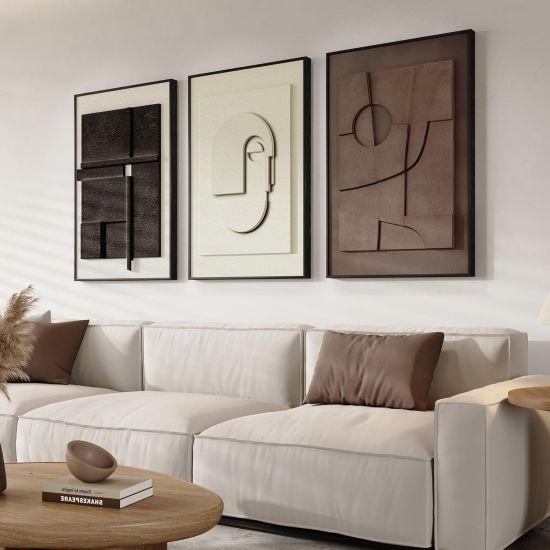 Minimalist çizgilere sahip bu modern duvar dekorasyonu seti, evinize zarif bir dokunuş katacak. 3 parçadan oluşan set, özel oyma tasarımı sayesinde duvarda 3 boyutlu görsel etki yaratır. Gölge ve yapısıyla mekanınıza derinlik katar.