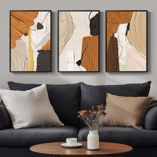 Kahverengi, çikolata ve bej tonlarının şık kombinasyonu, siyah çerçeveyle tamamlanarak her tür ev dekorasyonuna uyum sağlar. Bohem, İskandinav, wabi-sabi, minimalist veya lüks modern tarzlara mükemmel şekilde uyum gösterir.