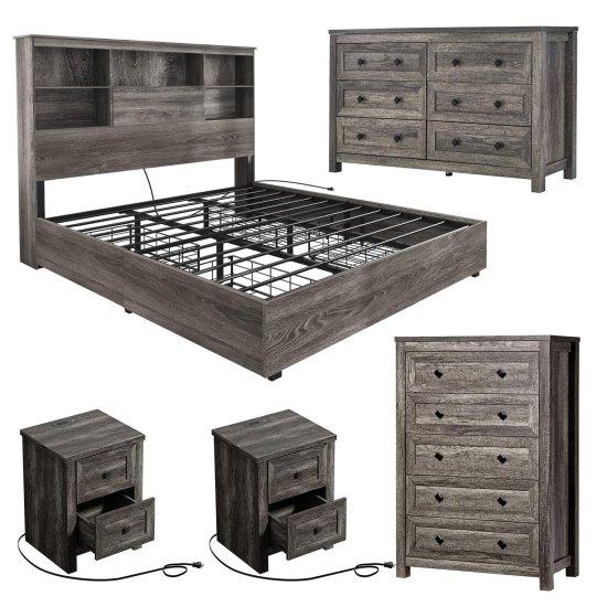 Bu modüler yatak odası takımı, dayanıklı endüstriyel ahşaptan üretilmiş şık ve fonksiyonel bir mobilya grubudur. Gri renk tonları ile modern ve rustik tarzı mükemmel bir şekilde birleştirir.