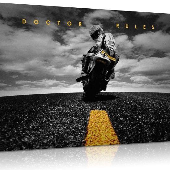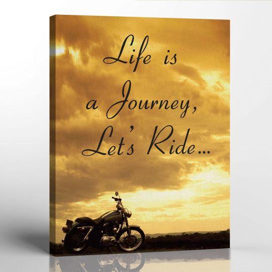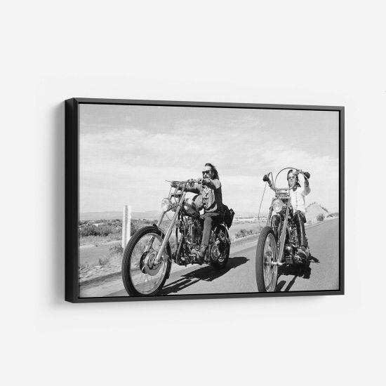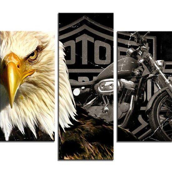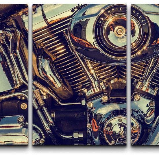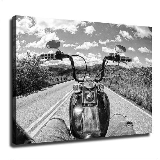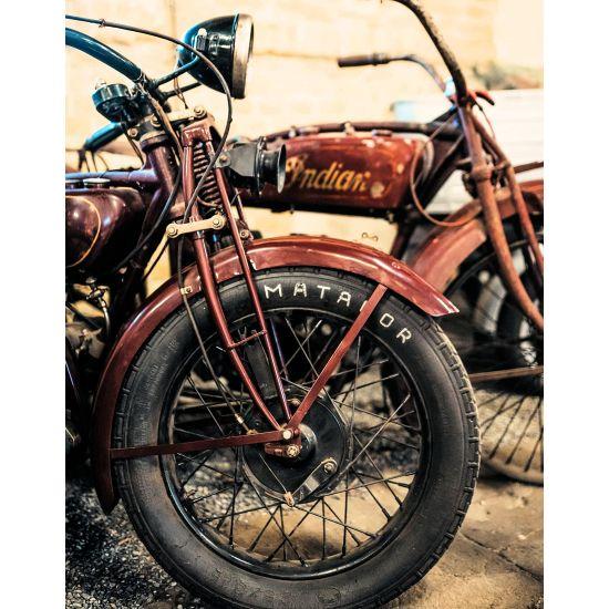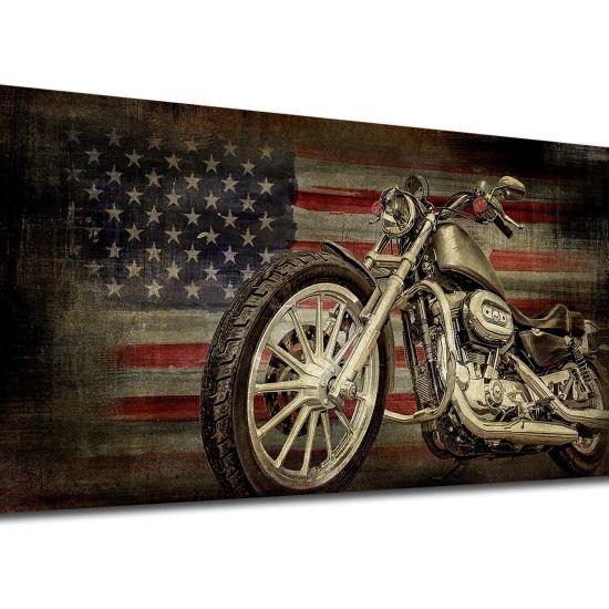 Tablonun alt kısmında ise, detaylarıyla göz dolduran vintage bir motosiklet resmedilmiş. Bu klasik Amerikan motosikleti, adeta Route 66 boyunca sürülmeyi bekliyor gibi. Motosikletin gümüş tonlarındaki parlak görüntüsü, arka plandaki sepya tonlarıyla mükemmel bir kontrast oluşturuyor.