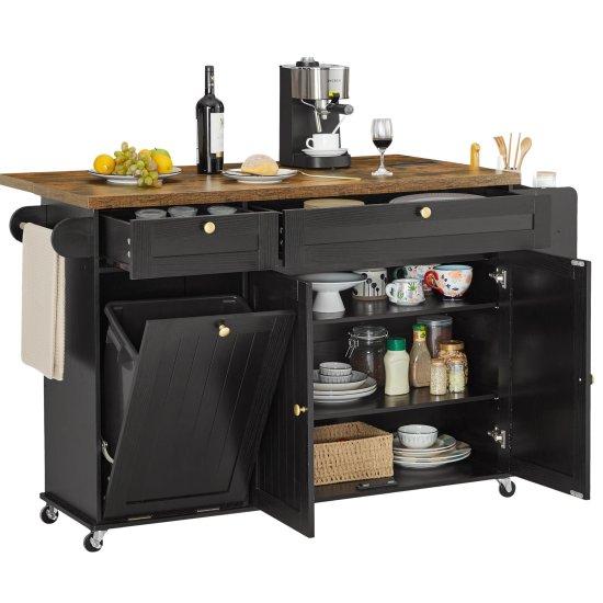 Tekerlekli tasarımı sayesinde mutfak içinde kolayca hareket ettirilebiliyor. Tezgah üzerinde bıçak tutucu, baharat rafı ve havlu askısı gibi pratik detaylar yer alıyor. Ayrıca entegre çöp kutusu depolama dolabı ile mutfak düzeninize katkı sağlıyor.