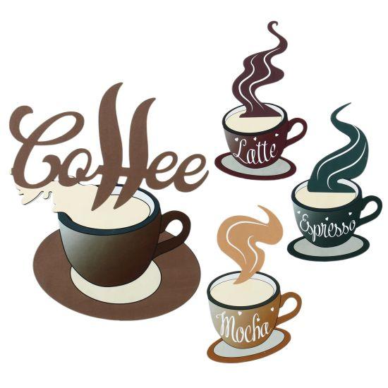 Mutfakta Duvar Dekorasyonu için Kahve Fincanı Temalı Ahşap ve Metal Duvar Süsü