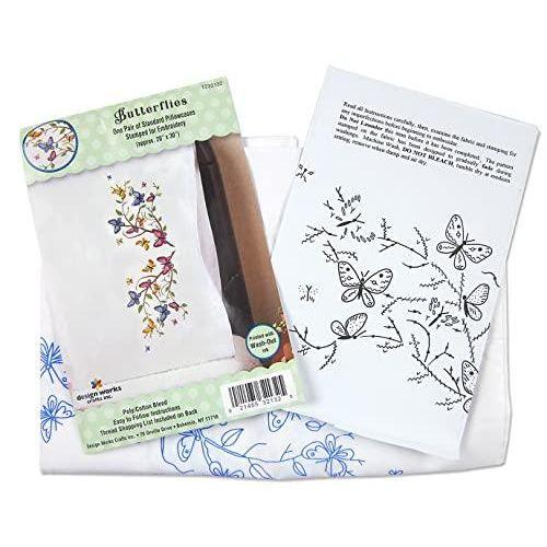Her bir yastık kılıfı 51 cm x 76 cm boyutlarında olup, %65 polyester ve %35 pamuklu kumaştan üretilmiştir. Kumaş üzerindeki nakış desenleri kolay takip edilebilen mavi mürekkepli baskılarla oluşturulmuş. Nakış ipliği ayrıca satılmaktadır ve ev dekoruna uygun renk seçenekleri sunulmaktadır.