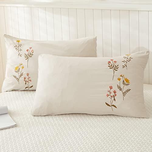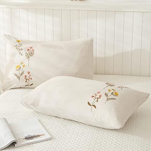 Yumuşak Doğal Desenli Krem Nakışlı Yastık Kılıfı