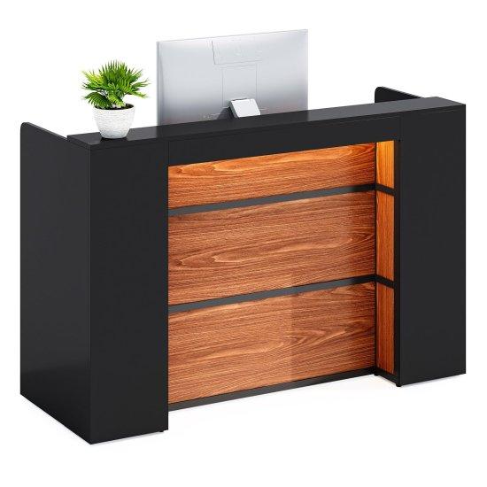 Klavye tepsisi gibi pratik detayları içeren banko, ofisler, klinikler, perakende alanları ve resepsiyon alanları için oldukça kullanışlı. Alt kısımdaki kapalı dolap, ekstra depolama alanı sağlıyor.
