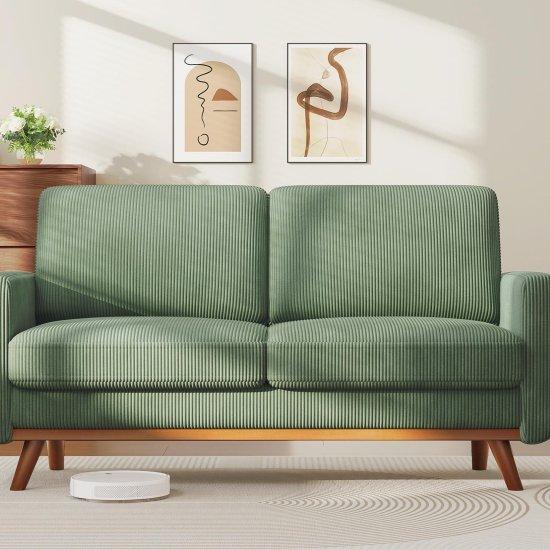 Açık yeşil rengi, modern iç mekanlara zarafet katan nötr bir ton. Ahşap ayakları ince ve şık görünüyor. Yaklaşık 170 cm genişliğinde olan koltuk, ofisler, yatak odaları ve oturma odaları için mükemmel bir aksesuar.