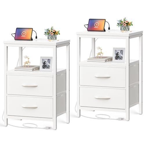 Modern Beyaz Çok Fonksiyonlu Şarj İstasyonlu Komodin