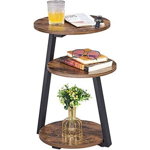 Rustik Kahverengi Ahşap Üç Katlı Modern Ofis Sehpası