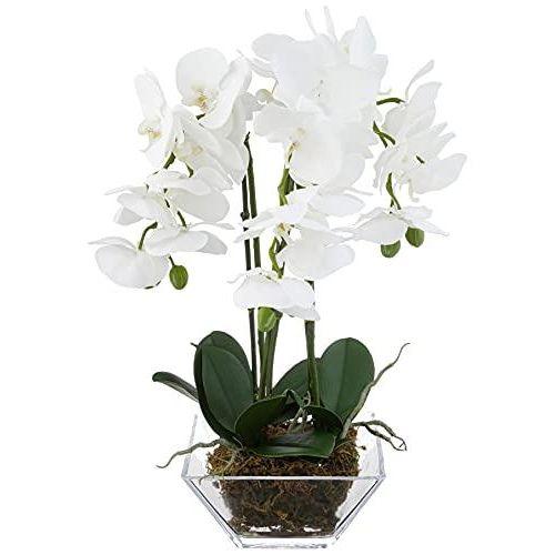 Beyaz Kristal Vazolu Yapay Orkide Aranjmanı