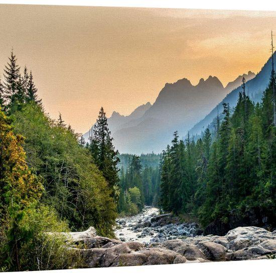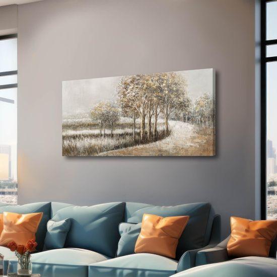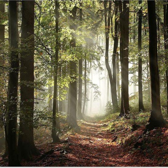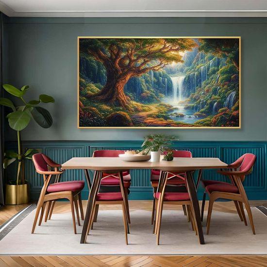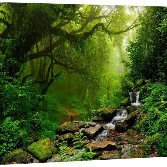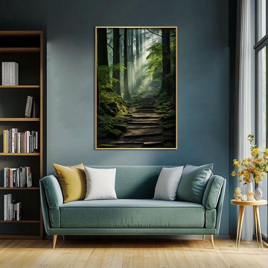 Bu etkileyici orman tablosu, doğanın gizemli güzelliğini evinize taşıyor. 122 cm genişliğinde ve 61 cm yüksekliğindeki geniş boyutlarıyla, duvarınızda göz alıcı bir odak noktası oluşturuyor.