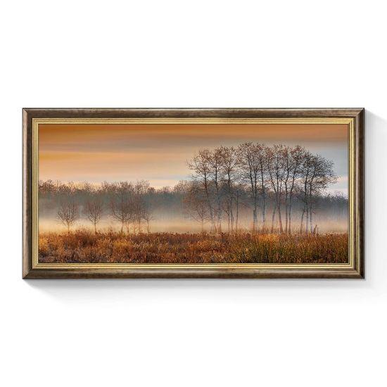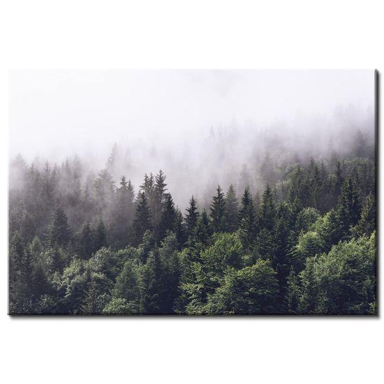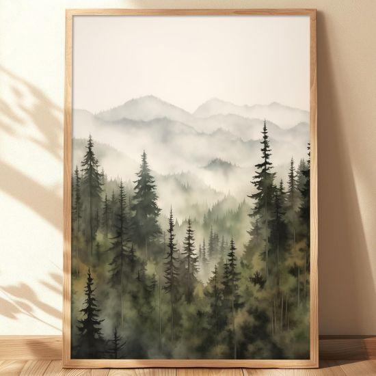 Yüksek kaliteli baskı tekniği, ağaçların ve sisin en ince detaylarını bile net bir şekilde ortaya çıkarıyor. İnce siyah çerçeve, resmin şıklığını tamamlıyor ve her türlü dekorasyona uyum sağlıyor.