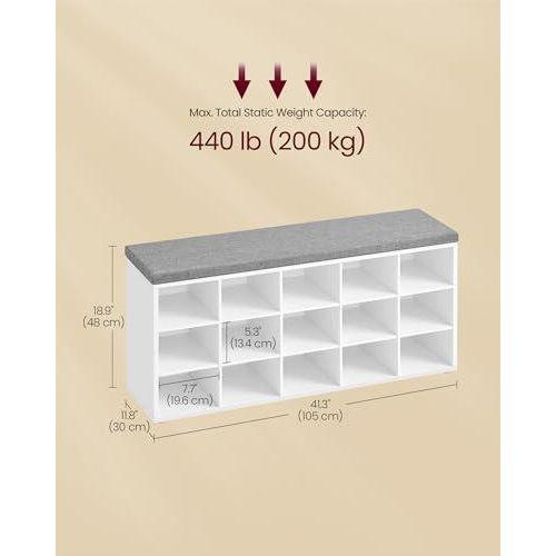 Üst kısımdaki 2,5 cm kalınlığındaki sünger minder sayesinde rahatça oturabilir ve ayakkabılarınızı kolayca değiştirebilirsiniz. Yaklaşık 35 cm derinliğindeki gövdesi, çeşitli boyutlarda ayakkabıları düzenli bir şekilde saklamanıza imkan veriyor.