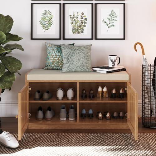 Yaklaşık 7 cm aralıklarla konumlandırılmış iki raf, toplamda 6 çift ayakkabıyı düzenli bir şekilde yerleştirmenize olanak sağlar. Alt raflar ayrıca küçük eşyalar veya depolama kutuları için de kullanılabilir. Üst kısımdaki yumuşak minder, ayakkabılarınızı giyerken veya çıkarırken konforlu bir oturma deneyimi sunar.