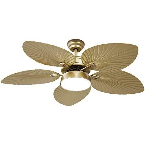 Modern ve tropikal tarzı bir arada sunan bu tavan fanı, iç ve dış mekan kullanımına uygun benzersiz bir aydınlatma çözümüdür. Altın rengi metal aksamı ve palmiye yapraklarını andıran pervane tasarımıyla göz alıcı bir dekoratif aksesuar niteliğindedir.
