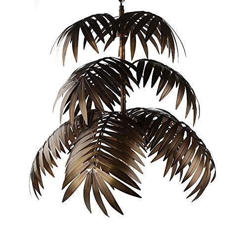 Nostaljik Tropik Dokulu Pirinç Palmiye Avizesi