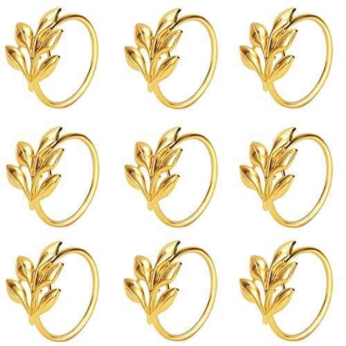 Altın Yaprak Desenli Zarif Peçete Yüzüğü Seti