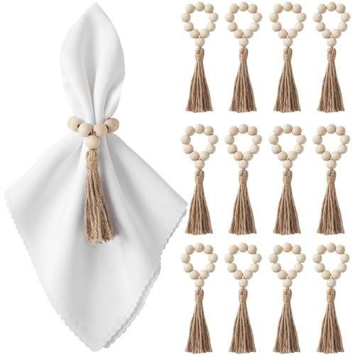 Bu ürün, doğal ve şık bir sofra düzenlemesi için ideal olan 12 adet peçete yüzüğünden oluşan özel bir aksesuar setidir. Ahşap boncuklar ve jüt ipler kullanılarak el işçiliğiyle üretilmiştir. Her bir peçete yüzüğü yaklaşık 15,5 cm uzunluğunda ve 10 ahşap boncuktan oluşmaktadır. Ürünün alt kısmında yaklaşık 9 cm uzunluğunda zarif bir püskül bulunmaktadır.