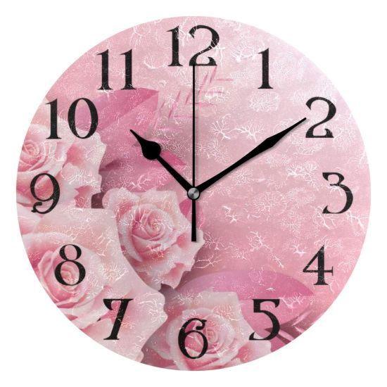 Yumuşak Pembe Sessiz Çalışan Duvar Saati