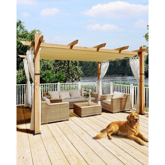 Geniş Açık Alan Ahşap Çerçeveli Sürgülü Çatılı Bahçe Pergolesi