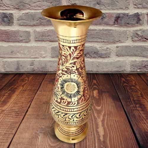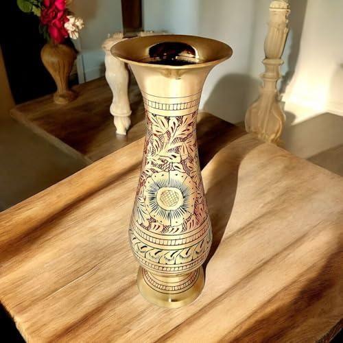 Bu vazo, geleneksel Hint el sanatlarının şaheser örneklerinden biridir. Parlak altın tonlarında pirinçten üretilmiş olup, üzerinde özenle işlenmiş Nakkashi desenler bulunmaktadır.