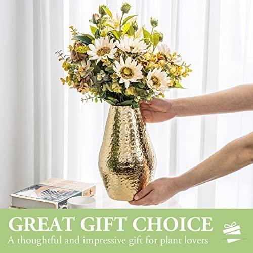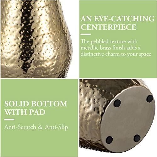 El İşçiliği Dokulu Altın Sarısı Pirinç Çiçek Vazosu