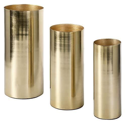 Modern Altın Sarısı 3’lü Silindir Pirinç Vazo Seti