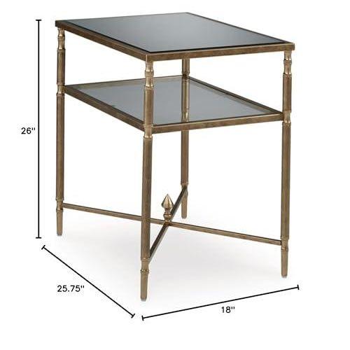 Antik Altın Detaylı Füme Camlı Pirinç Yan Sehpa