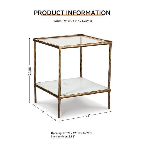 Yaklaşık 53 cm genişliğinde ve 53 cm derinliğinde olan sehpa, 62 cm yüksekliğiyle farklı dekorasyon stillerine uyum sağlar. Üst cam yüzeyi abajur, kitap veya dekoratif objeler için ideal bir alan sunarken, alt mermer raf ek eşyaları yerleştirmek için kullanılabilir.