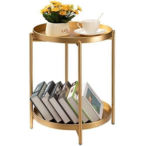 Yuvarlak tasarımı ve altın rengi, farklı dekorasyon stillerine uyum sağlayarak evinize şıklık katar. Alt rafı kitaplarınız için ideal bir depolama alanı oluştururken, üst tepsi çay, kahve veya küçük süs eşyaları için kullanışlı bir platform sunar.