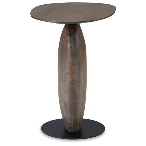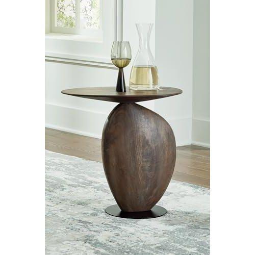 Bu dekoratif aksesuar, modern ve sanatsal bir yaklaşımla tasarlanmış benzersiz bir yan sehpadır. Mango ağacı ve metal malzemeden üretilen ürün, doğal formlu bir alt gövde ve yuvarlak bir masa üst yüzeyine sahiptir.
