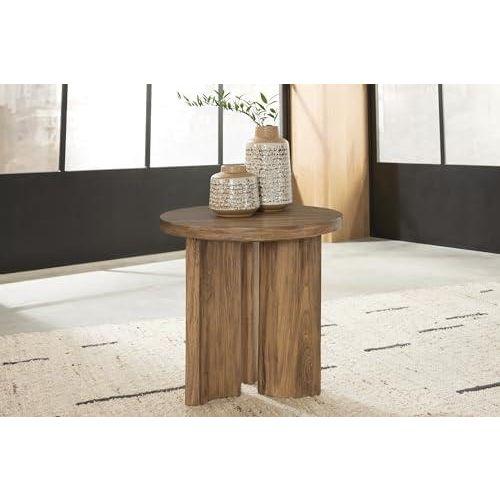 Rustik Ahşap Tonlu Yuvarlak Yan Sehpa