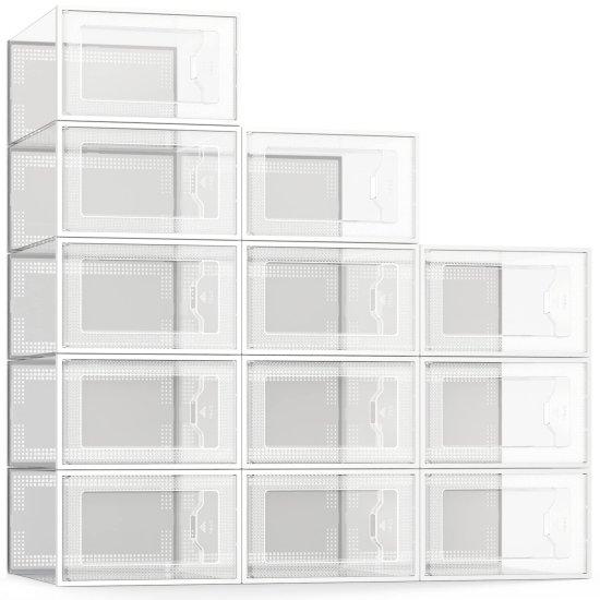 On iki adet kutudan oluşan bu set, farklı boyutlardaki ayakkabıları düzenli bir şekilde depolamanıza imkan verir. Şeffaf ön kapakları sayesinde, ayakkabılarınızı çıkarmak için kutuyu açmadan içeriği kolayca görebilirsiniz.