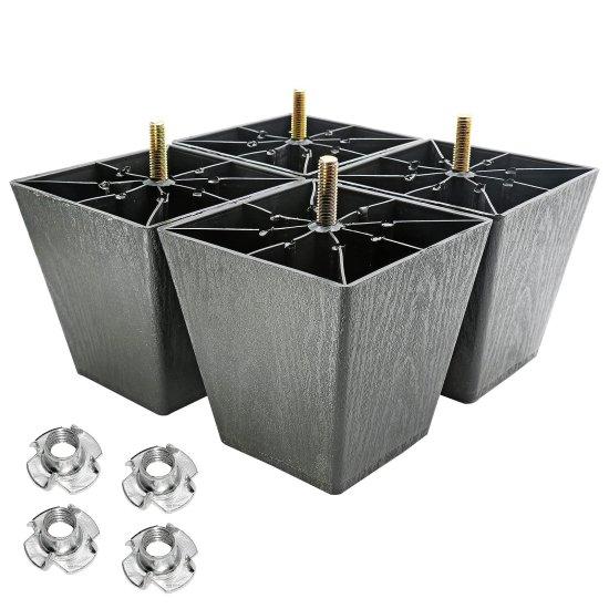 Her bir ayak, dayanıklı plastik malzemeden üretilmiştir. Mat siyah yüzeyi, farklı mobilya stilleriyle uyum sağlayacak niteliktedir. Ayakların konik tasarımı, mobilyaya zarif ve çağdaş bir görünüm kazandırır.