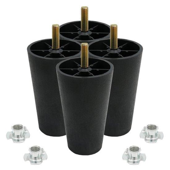 Bu mobilya ayağı seti, dayanıklı ve şık bir tasarıma sahip pratik bir aksesuar olarak öne çıkıyor. Siyah renkli ve konik formlu ayaklar, endüstriyel bir görünüm sergiliyor. Mat yüzey dokusuna sahip plastik malzemeden üretilmiş ayaklar, mobilyalarınıza modern bir görünüm katıyor.