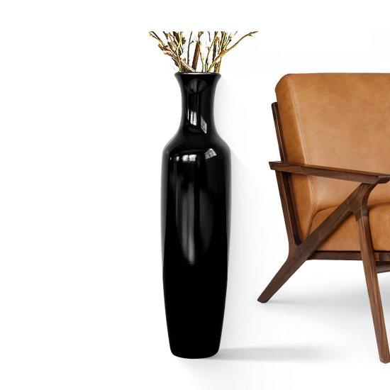 Zeminde duran bu vazo, herhangi bir iç mekana zarafet ve derinlik katıyor. Ahşap mobilyalarla uyumlu siyah rengi, farklı dekorasyon tarzlarına kolayca uyum sağlıyor.