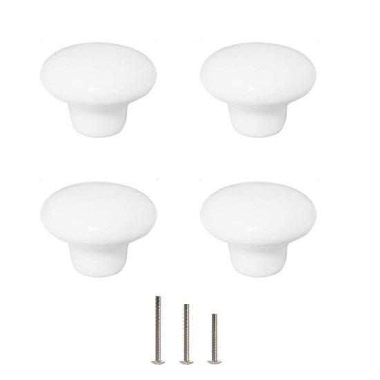 Beyaz Seramik Yuvarlak Mobilya Kulpu Seti