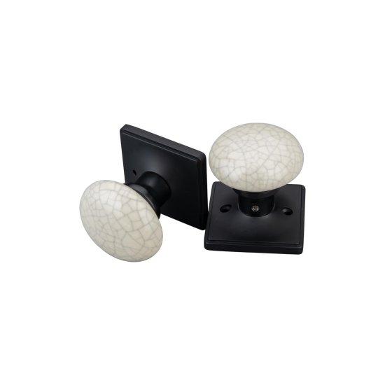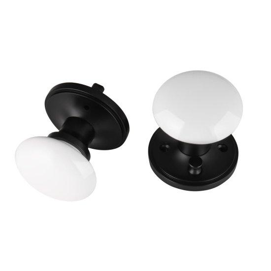 Mat Siyah Çerçeveli Beyaz Porselen Kapı Kolu Seti