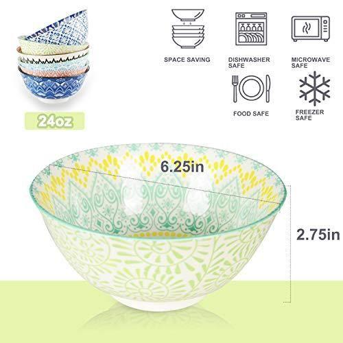 Bu porselen kase seti, mutfaklarınıza renk ve şıklık katacak benzersiz bir aksesuar. Toplam 6 adet farklı desenli kaseden oluşan set, her biri 24 oz (yaklaşık 710 ml) kapasiteye sahip. Kaseler, zarif mandala desenlerle süslenmiş ve canlı renk tonlarında tasarlanmıştır.